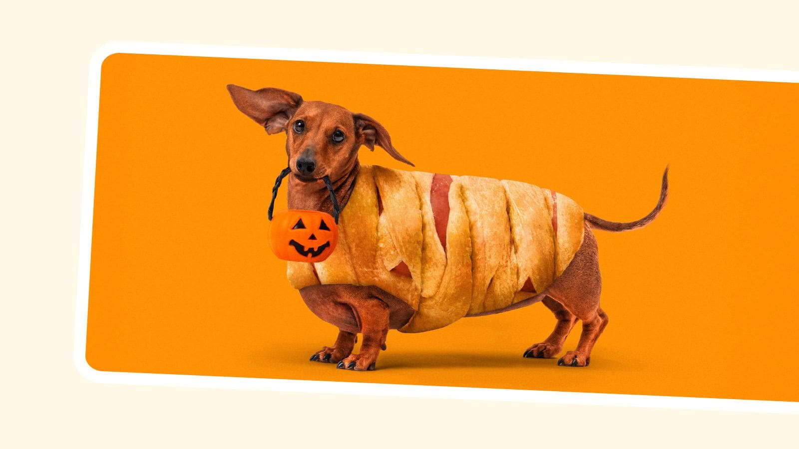 These matching mummy jackets turn your dog into the ultimate sidekick for the cheesy, crescent-wrapped hot dogs with mustard "mummy eyes" that have become a fall tradition.