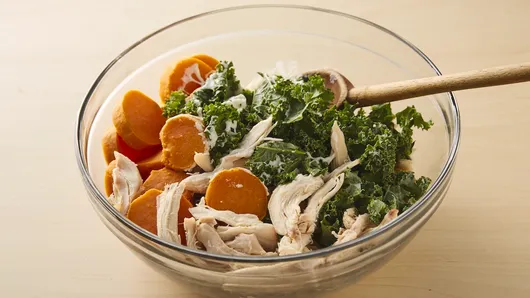 var configuration = {"title":"Cheesy Chicken and Sweet Potato Casserole","introduction":"This casserole takes comfort food to a whole new level. Tender sweet potatoes, chicken and kale are the coziest combination when paired with tangy Gruyère or Swiss cheese.","servingSize":"1 Serving","image":{"small":{"media":"(min-width: 0px)","src":"https://mojo.generalmills.com/api/public/content/xjkG226y80CuC4ge3hkLdg_webp_base.webp?v=1895323f\u0026t=e724eca7b3c24a8aaa6e089ed9e611fd"},"medium":{"media":"(min-width: 500px)","src":"https://rms-media-prod.generalmills.com/b6a65b9f-9e41-428e-b013-b045d68efc64.jpg"},"large":{"media":"(min-width: 767px)","src":"https://rms-media-prod.generalmills.com/b6a65b9f-9e41-428e-b013-b045d68efc64.jpg"},"alt":"Cheesy Chicken and Sweet Potato Casserole"},"contributor":{"label":"By","name":"Pillsbury Kitchens","profileUrl":"/about-us","displayDate":{"label":"Updated","date":"Dec 15, 2017"}},"ingredientGroups":[{"ingredients":[{"quantity":"3","description":"lb sweet potatoes"},{"quantity":"1/3","description":"cup butter"},{"quantity":"1/4","description":"cup all-purpose flour"},{"quantity":"1","description":"teaspoon salt"},{"quantity":"1/4","description":"teaspoon ground pepper"},{"quantity":"3","description":"cups half-and-half"},{"quantity":"8","description":"oz Gruyère or Swiss cheese, shredded (2 cups)"},{"quantity":"3","description":"cups fresh kale, coarsely chopped"},{"quantity":"2","description":"cups shredded cooked chicken"}]}],"steps":[{"description":"Heat oven to 350°F. Spray 13x9-inch (3-quart) glass baking dish with cooking spray."},{"description":"Pierce sweet potatoes with fork; place on cookie sheet. Bake 50 to 60 minutes or until potatoes can be easily pierced with a knife. Cool 20 minutes. Peel potatoes; cut each into 1/4-inch slices.","stepShotImageUrl":"//mojo.generalmills.com/api/public/content/d0_n8guK-EifGZj6983iXQ_webp_base.webp?v=87ec18c5\u0026t=51a43a57af4046789e5a7f20567b1195"},{"description":"Meanwhile, in 2-quart saucepan, melt butter over medium heat. Stir in flour, salt and pepper using whisk. Cook until smooth and bubbly, stirring frequently. Gradually stir in half-and-half, stirring frequently, 5 to 7 minutes or until slightly thickened. Stir in 1 cup of the cheese.","stepShotImageUrl":"//mojo.generalmills.com/api/public/content/nywvsAM85U29vtZSmR0rbw_webp_base.webp?v=e1d5d510\u0026t=51a43a57af4046789e5a7f20567b1195"},{"description":"In large bowl, toss potatoes, half-and-half mixture, kale and chicken until well coated. Spoon into baking dish. Sprinkle with remaining 1 cup cheese.","stepShotImageUrl":"//mojo.generalmills.com/api/public/content/_0xVJE-FSEGC0UjlVV7--A_webp_base.webp?v=9687eafa\u0026t=51a43a57af4046789e5a7f20567b1195"},{"description":"Bake 25 to 30 minutes or until thoroughly heated and cheese is melted. Let stand 15 minutes before serving."}],"tips":[{"title":"","description":"Bake sweet potatoes the day before preparing this casserole for a quick weeknight meal.","category":"Do-Ahead","tipShots":[]},{"title":"","description":"Hold the chicken, and turn this into an easy side dish for the holidays!","category":"Variation","tipShots":[]},{"title":"","description":"The fall and winter seasons are prime time for comfort food, but sometimes those creamy pasta casseroles can get a little heavy. This chicken and sweet potato casserole is a great alternative for when you’re looking for something that’s delicious and comforting, but a little better for you. It’s packed with kale and sweet potatoes, which means it’s chock-full of nutrients. Just one sweet potato (skin included) is an excellent source of beta-carotene, vitamin C and fiber—and it’s low in calories! Similarly, kale is a low-calorie vegetable and is considered one of the most nutrient-rich foods out there loaded with vitamins, minerals and fiber.\r\n\r\nSweet potatoes taste delicious when combined with the kale, chicken and Gruyere cheese in this recipe, but it’s not the only dish we have that pairs this unlikely combo together—we have plenty more \u003ca href=\u0022 https://www.pillsbury.com/recipes/ingredient/vegetables/potatoes/sweet\u0022 target=\u0022_blank\u0022\u003e chicken and sweet potato recipes, casseroles and many more easy meals \u003c/a\u003e that start with colorful sweet potatoes that are equally as tasty. If you’re a first-time sweet potato cooker, read through our comprehensive article on \u003ca href=\u0022 https://www.pillsbury.com/everyday-eats/sides/how-to-cook-sweet-potatoes-3-easy-ways\r\n\u0022 target=\u0022_blank\u0022\u003e how to cook sweet potatoes. \u003c/a\u003e \r\n","category":"Editorial","tipShots":[]},{"title":"","description":"Kitchen Tested - 7/2016.","category":"Kitchen Tested","tipShots":[]}],"kitchenTips":[{"title":"","description":"Bake sweet potatoes the day before preparing this casserole for a quick weeknight meal.","category":"Do-Ahead","tipShots":[]},{"title":"","description":"Hold the chicken, and turn this into an easy side dish for the holidays!","category":"Variation","tipShots":[]}],"additionalContent":[],"faq":[],"tipCategories":[{"categoryName":"Editorial","heading":"More About This Recipe","cssClass":"recipePartStory","expandOnInit":false,"expandText":"More +","collapseText":"Less -","expandEventName":"","collapseEventName":"","image":"","tips":[{"title":"","description":"The fall and winter seasons are prime time for comfort food, but sometimes those creamy pasta casseroles can get a little heavy. This chicken and sweet potato casserole is a great alternative for when you’re looking for something that’s delicious and comforting, but a little better for you. It’s packed with kale and sweet potatoes, which means it’s chock-full of nutrients. Just one sweet potato (skin included) is an excellent source of beta-carotene, vitamin C and fiber—and it’s low in calories! Similarly, kale is a low-calorie vegetable and is considered one of the most nutrient-rich foods out there loaded w