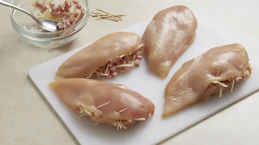 var configuration = {"title":"Stuffed Chicken Breasts Cordon Bleu","introduction":"Baked chicken cordon bleu has a fancy reputation, but this recipe couldn\u0027t be any easier. Tender chicken breasts are stuffed with chopped ham and shredded Swiss cheese — and then topped with butter-coated Italian-style breadcrumbs. You may be serving this easy stuffed chicken cordon bleu dish at your family\u0027s dinner table, but it will taste like it came from your favorite restaurant.","servingSize":"1 Serving","image":{"small":{"media":"(min-width: 0px)","src":"https://mojo.generalmills.com/api/public/content/V_QrMCDtZ0CDnwCeEESuhg_webp_base.webp?v=49f11ebc\u0026t=e724eca7b3c24a8aaa6e089ed9e611fd"},"medium":{"media":"(min-width: 500px)","src":"https://mojo.generalmills.com/api/public/content/V_QrMCDtZ0CDnwCeEESuhg_webp_base.webp?v=49f11ebc\u0026t=191ddcab8d1c415fa10fa00a14351227"},"large":{"media":"(min-width: 767px)","src":"https://mojo.generalmills.com/api/public/content/V_QrMCDtZ0CDnwCeEESuhg_webp_base.webp?v=49f11ebc\u0026t=191ddcab8d1c415fa10fa00a14351227"},"alt":"Stuffed Chicken Breasts Cordon Bleu"},"contributor":{"label":"By","name":"Pillsbury Kitchens","profileUrl":"/about-us","displayDate":{"label":"Updated","date":"Aug 11, 2023"}},"ingredientGroups":[{"ingredients":[{"quantity":"4","description":"large boneless skinless chicken breasts (1 1/4 to 1 1/2 lb)"},{"quantity":"1/2","description":"cup shredded Swiss cheese (2 oz)"},{"quantity":"1/2","description":"cup finely chopped ham (2 oz)"},{"quantity":"3","description":"tablespoons butter, melted"},{"quantity":"3/4","description":"cup Progresso™ Italian style panko crispy bread crumbs "}]}],"steps":[{"description":"Heat oven to 375°F. To form pocket in each chicken breast, cut 3-inch-long slit in thick side of each breast, cutting into breast about 2 inches and to within 1/2 inch of opposite side. ","stepShotImageUrl":"//mojo.generalmills.com/api/public/content/1WX0HoLa502ei-6-UenmZQ_webp_base.webp?v=6b7d0740\u0026t=51a43a57af4046789e5a7f20567b1195"},{"description":"In small bowl, mix cheese and ham. Spoon evenly into pockets in chicken; secure openings with toothpicks. ","stepShotImageUrl":"//mojo.generalmills.com/api/public/content/lsLkTzilMUCmttcl6FkWzA_webp_base.webp?v=051ecd72\u0026t=51a43a57af4046789e5a7f20567b1195"},{"description":"Place melted butter in shallow dish. Place bread crumbs on large plate. Dip each stuffed chicken breast into butter; roll in bread crumbs to coat. Place in ungreased 13x9-inch (3-quart) glass baking dish. Sprinkle any remaining bread crumbs over chicken.","stepShotImageUrl":"//mojo.generalmills.com/api/public/content/zCPhqJGfMkyYToLRlkFxhA_webp_base.webp?v=1383f9f4\u0026t=51a43a57af4046789e5a7f20567b1195"},{"description":"Bake 28 to 32 minutes or until juice of chicken is clear when center of thickest part is cut (at least 165°F). Remove toothpicks before serving. "}],"tips":[{"title":"","description":"Before stuffing, place each chicken breast between two pieces of plastic wrap and pound on a cutting board to ensure uniformity.","category":"Techniques","tipShots":[]},{"title":"","description":"If you have deli ham on hand, you can stuff 1 to 2 thin slices in the pocket of each chicken breast in place of the chopped ham.","category":"Substitution","tipShots":[]},{"title":"","description":"If you need to melt the butter quickly, put in a microwave-safe container, cover it and microwave it on High for about 30 seconds.","category":"Techniques","tipShots":[]},{"title":"","description":"Use an instant-read meat thermometer to make sure your chicken is fully cooked. Insert it in the thickest part of the chicken and look for a temperature of 165°F.","category":"Food Safety","tipShots":[]},{"title":"","description":"For a complete meal, serve this Stuffed Chicken Breasts Cordon Bleu with a fresh salad or a side of vegetables, like roasted broccoli.","category":"Serving Suggestions/Menu","tipShots":[]},{"title":"","description":"In French, “cordon bleu” translates to “blue ribbon” in English, and believe it or not, this term dates all the way back to 16th century France, according to \u003ca href=\u0022https://www.smithsonianjourneys.org/blog/how-did-le-cordon-bleu-get-its-name-180950852/\u0022 target=\u0022_blank\u0022\u003eSmithsonian\u003c/a\u003e. An order of knights that were created by King Henry III of France wore blue ribbons with the cross of the Holy Spirit attached. Large feasts were held for these knights, and the food served was of the highest quality for the prestigious group—it’s thought that the term “cordon bleu” then became associated not only with the knights, but also with the food served at their dinners.\r\n\r\nChicken cordon bleu nowadays is a type of stuffed chicken breast. The common fillings are ham and cheese (often Swiss cheese). This dish can be baked in the oven or cooked on the stove. This easy five-ingredient recipe is baked in the oven and is stuffed with the classic cordon bleu ingredients, and to make it even better, is rolled in a panko bread crumb mixture for a tasty, crunchy finishing touch. \r\n\r\nStuffing chicken breasts with ham and Swiss is just the beginning. Thanks to chicken breasts’ versatility, you can prepare them in seemingly endless different ways! Browse all of our easy \u003ca href=\u0022https://www.pillsbury.com/recipes/ingredient/chicken/breasts\u0022 target=\u0022_blank\u0022\u003echicken breast recipes\u003c/a\u003e and see for yourself.","category":"Editorial","tipShots":[]},{"title":"","description":"Recipe meets Kitchen Tested criteria. Recipe reviewed as part of project MSO-6632 – MSP Oct RDP Tips Review","category":"Kitchen Tested","tipShots":[]}],"kitchenTips":[{"title":"","description":"Before stuffing, place each chicken breast between two pieces of plastic wrap and pound on a cutting board to ensure uniformity.","category":"Techniques","tipShots":[]},{"title":"","description":"If you have deli ham on hand, you can stuff
