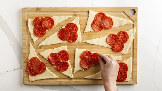 2. Top Crescents with Pepperoni and Cheese