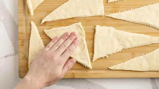Remove dough from the can and separate using the perforations. Pat each triangle with your fingers to make them slightly larger to hold all the delicious fillings.