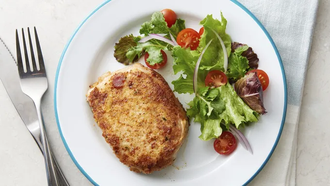 Step2Sprinkle both sides of pork chops with salt and pepper.