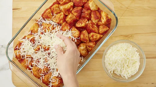 Create some new memories in the kitchen with this easy, cheesy, casserole-style bubble pizza. Featuring everything you love about a casserole, this hassle-free bubble pizza recipe only requires 10 minutes of prep, making it a perfect activity for your favorite kitchen helpers. Teach them how to make bubble pizza with three simple ingredients: Pillsbury™ Grands!™ Southern Homestyle Buttermilk Biscuits, pizza sauce and shredded cheese. This is one comforting dish you'll want to make again and again.