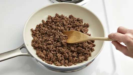 Step1In 10-inch skillet, cook beef over medium-high heat 5 to 7 minutes, stirring frequently, until no longer pink; drain.