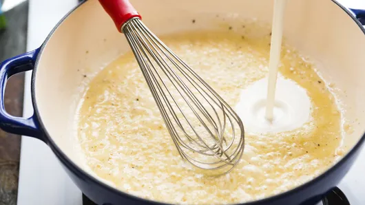 • Making a Smooth Sauce: Use a whisk to stir in the flour until the mixture is smooth. Then, slowly stir in the cream. Go slow and keep stirring to get a smooth sauce.