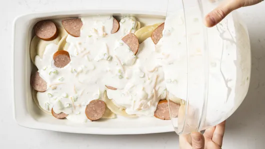 var configuration = {"title":"Pierogi Casserole","introduction":"\u003cp\u003eIf you’re a fan of pierogies, this pierogi casserole is sure to become a new dinner favorite. Pierogies are stuffed dumplings of Eastern European origin, usually filled with potato, meat, cheese or vegetables. This pierogi casserole recipe uses frozen pierogies for easy prep. Paired with savory kielbasa, and a rich, creamy cheese sauce, it’s comfort food at its best.\u003c/p\u003e\u003cp\u003eThis recipe is perfect on busy weeknights when you want a hearty meal without the hassle or as a make-ahead dish to warm up for no-fuss entertaining. It’s easy to prepare ahead of time and simply reheat when you’re ready to enjoy a warm, satisfying meal.\u003c/p\u003e","servingSize":"1 Serving","image":{"small":{"media":"(min-width: 0px)","src":"https://mojo.generalmills.com/api/public/content/JjNV8piZSeC7c8LZ1URglQ_webp_base.webp?v=debd6745\u0026t=e724eca7b3c24a8aaa6e089ed9e611fd"},"medium":{"media":"(min-width: 500px)","src":"https://mojo.generalmills.com/api/public/content/JjNV8piZSeC7c8LZ1URglQ_webp_base.webp?v=debd6745\u0026t=191ddcab8d1c415fa10fa00a14351227"},"large":{"media":"(min-width: 767px)","src":"https://mojo.generalmills.com/api/public/content/JjNV8piZSeC7c8LZ1URglQ_webp_base.webp?v=debd6745\u0026t=191ddcab8d1c415fa10fa00a14351227"},"alt":"Pierogi Casserole"},"contributor":{"label":"By","name":"Edited by Joanna","profileUrl":"/about-us/joanna","displayDate":{"label":"Updated","date":"Aug 29, 2025"}},"ingredientGroups":[{"ingredients":[{"quantity":"1","description":"package (16 oz) frozen potato and onion pierogies"},{"quantity":"1","description":"tablespoon water"},{"quantity":"7","description":"oz kielbasa sausage, sliced (from 14-oz package)"},{"quantity":"4","description":"oz cream cheese (from 8-oz package), very softened"},{"quantity":"1/2","description":"cup sour cream"},{"quantity":"1/2","description":"cup Progresso™ chicken broth (from 32-oz carton)"},{"quantity":"1/8","description":"teaspoon coarse ground black pepper"},{"quantity":"1","description":"cup shredded cheddar cheese (4 oz), divided"},{"quantity":"1/2","description":"cup thinly diagonally sliced green onions, divided"}]}],"steps":[{"description":"\u003cp\u003eHeat oven to 375°F. Spray 12x8-inch (2-quart) ceramic or glass baking dish with cooking spray.\u003c/p\u003e","stepShotImageUrl":"//mojo.generalmills.com/api/public/content/jgF2Bb1ZRJakCehSoyaKdQ_webp_base.webp?v=df4690b6\u0026t=51a43a57af4046789e5a7f20567b1195"},{"description":"\u003cp\u003ePlace frozen pierogies and water in medium microwave-safe bowl; cover with plastic wrap. Microwave on High for 2 minutes; stir. Continue microwaving on High for 1 1/2 to 2 minutes until thawed.\u003c/p\u003e","stepShotImageUrl":"//mojo.generalmills.com/api/public/content/hriaOZcfRVCBjh7ME0AaCA_webp_base.webp?v=3f2cf3e5\u0026t=51a43a57af4046789e5a7f20567b1195"},{"description":"\u003cp\u003eLayer pierogies evenly in baking dish, overlapping slightly. Top with sausage.\u003c/p\u003e","stepShotImageUrl":"//mojo.generalmills.com/api/public/content/ziHWVkd-TtiuIQKyiCnV1Q_webp_base.webp?v=691dbe36\u0026t=51a43a57af4046789e5a7f20567b1195"},{"description":"\u003cp\u003eIn medium bowl, whisk together cream cheese, sour cream, chicken broth, and pepper until smooth. Stir in 1/2 cup of the cheddar cheese and 1/3 cup of the green onions (reserve remaining onions for topping).\u003c/p\u003e","stepShotImageUrl":"//mojo.generalmills.com/api/public/content/pLfrVK3IR7a7KzAdKcWq7A_webp_base.webp?v=f32643d7\u0026t=51a43a57af4046789e5a7f20567b1195"},{"description":"\u003cp\u003ePour cream cheese mixture evenly over pierogies. Cover with foil; bake 22 to 27 minutes or until center is heated through and temperature reaches 165°F.\u003c/p\u003e","stepShotImageUrl":"//mojo.generalmills.com/api/public/content/m74oSRxPTUuEgHdcK1nq6A_webp_base.webp?v=f9f93429\u0026t=51a43a57af4046789e5a7f20567b1195"},{"description":"\u003cp\u003eUncover and top with remaining cheese; bake 3 to 5 minutes or until cheese is melted.\u003c/p\u003e","stepShotImageUrl":"//mojo.generalmills.com/api/public/content/WXW_tU3vR0-6-KZ9LO7cAg_webp_base.webp?v=0e442733\u0026t=51a43a57af4046789e5a7f20567b1195"},{"description":"\u003cp\u003eSprinkle with reserved green onions.\u003c/p\u003e","stepShotImageUrl":"//mojo.generalmills.com/api/public/content/ptediFyDRS-eczwxYjxqlg_webp_base.webp?v=78936ec0\u0026t=51a43a57af4046789e5a7f20567b1195"}],"tips":[{"title":"","description":"Quick, hearty pierogi casserole made with frozen pierogi, kielbasa, cheese, and a creamy sauce—quick prep, great leftovers, and full of cozy flavor.","category":"Rich Snippet","tipShots":[]},{"title":"","description":"If preferred, swap in turkey kielbasa and reduced-fat versions of cream cheese and sour cream.","category":"Substitution","tipShots":[]},{"title":"","description":"Kitchen Tested - 10/2016.","category":"Kitchen Tested","tipShots":[]}],"kitchenTips":[{"title":"","description":"If preferred, swap in turkey kielbasa and reduced-fat versions of cream cheese and sour cream.","category":"Substitution","tipShots":[]}],"additionalContent":[{"title":"Recipe Ingredients ","description":"\u003cp\u003eHere’s what you need to create this hearty, comforting pierogi casserole.\u003c/p\u003e\u003cp\u003e\u003cstrong\u003eFrozen Pierogies: \u003c/strong\u003eThese pre-made dumplings are typically filled with potatoes and onions and come ready to be cooked or baked. Look for them in your grocer’s freezer.\u003c/p\u003e\u003cp\u003e\u003cstrong\u003eKielbasa Sausage: \u003c/strong\u003eIn many Eastern European traditions, pierogies are often served with sausages like kielbasa. This pairing highlights the region’s love for hearty, flavorful comfort foods. You can also use another type of sausage for this recipe if you’d prefer. It’s all about adding that savory, smoky flavor!\u003c/p\u003e\u003cp\u003e\u003cstrong\u003eCream Cheese and Sour Cream:\u003c/strong\u003e 