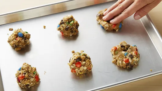These 5-ingredient easy Monster Cookies prove that less is more with too-good-to-be-true ingredients like peanut butter cookie dough, chocolate chips, M&M’s® candies, peanuts and oatmeal. Talk about a tasty treat! Bake up a batch of these quick Monster Cookies whenever you need a fantastic and family-friendly dessert.