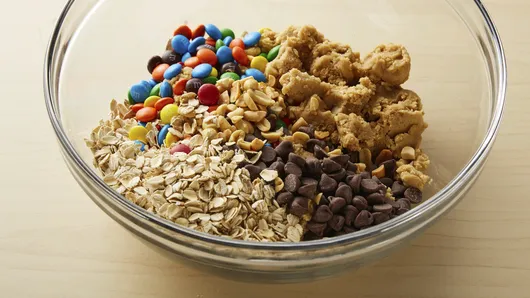 Step2In large bowl, break cookie dough into small chunks. Stir in remaining ingredients until well mixed.