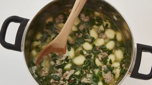 var configuration = {"title":"Sausage and Gnocchi Soup","introduction":"Zuppa Toscana, or \u0022Tuscan Soup,\u0022 is a classic Italian soup filled with delicious, creamy flavor. Want to try a no-fuss take on the classic dish? This easy recipe for Sausage and Gnocchi Soup makes family dinner a breeze! Load up a pot with Italian sausage, potato gnocchi, spinach, chopped onion, whipping cream and seasoning for an irresistible, hearty lunch or dinner that comes together in just 30 minutes. This Italian Sausage and Gnocchi Soup will transport the family to Italy with just one bite!","servingSize":"1 Serving","image":{"small":{"media":"(min-width: 0px)","src":"https://mojo.generalmills.com/api/public/content/xCpK-I1Hv0eWWIEmNqCqhw_webp_base.webp?v=8998ff55\u0026t=e724eca7b3c24a8aaa6e089ed9e611fd"},"medium":{"media":"(min-width: 500px)","src":"https://mojo.generalmills.com/api/public/content/xCpK-I1Hv0eWWIEmNqCqhw_webp_base.webp?v=8998ff55\u0026t=191ddcab8d1c415fa10fa00a14351227"},"large":{"media":"(min-width: 767px)","src":"https://mojo.generalmills.com/api/public/content/xCpK-I1Hv0eWWIEmNqCqhw_webp_base.webp?v=8998ff55\u0026t=191ddcab8d1c415fa10fa00a14351227"},"alt":"Sausage and Gnocchi Soup"},"contributor":{"label":"By","name":"Pillsbury Kitchens","profileUrl":"/about-us","displayDate":{"label":"Updated","date":"Mar 8, 2023"}},"ingredientGroups":[{"ingredients":[{"quantity":"1","description":"lb bulk Italian sausage"},{"quantity":"1/2","description":"cup chopped onion"},{"quantity":"2","description":"cloves garlic, finely chopped (2 teaspoons)"},{"quantity":"1","description":"carton (32 oz) Progresso™ chicken broth"},{"quantity":"1/2","description":"teaspoon salt"},{"quantity":"1/4","description":"teaspoon pepper"},{"quantity":"1","description":"package (16 oz) potato gnocchi"},{"quantity":"3","description":"cups packed fresh spinach (4 oz), coarsely chopped"},{"quantity":"1","description":"cup heavy whipping cream"}]}],"steps":[{"description":"In 5-quart Dutch oven, cook Italian sausage over medium heat 7 to 10 minutes or until sausage is no longer pink; drain. Add onion and garlic; continue cooking 2 to 3 minutes or until onions are tender.","stepShotImageUrl":"//mojo.generalmills.com/api/public/content/XwQSsjx-dk6WNUntmCCf8Q_webp_base.webp?v=29f0f98d\u0026t=51a43a57af4046789e5a7f20567b1195"},{"description":"Add chicken broth, salt and pepper; heat to boiling. Stir in gnocchi and spinach; simmer 2 to 3 minutes or until gnocchi begins to float. Stir in whipping cream; serve.","stepShotImageUrl":"//mojo.generalmills.com/api/public/content/z6Tu5_tRiE6kAdZuy4xWdg_webp_base.webp?v=9529dc04\u0026t=51a43a57af4046789e5a7f20567b1195"}],"tips":[{"title":"","description":"If you like a little heat, add 1/4 teaspoon of crushed red pepper to your gnocchi soup.","category":"Recipe/Ingredient Facts","tipShots":[]},{"title":"","description":"Packaged potato gnocchi is shelf-stable and can be found in the pasta aisle of your grocery store.","category":"Recipe/Ingredient Facts","tipShots":[]},{"title":"","description":"Gnocchi is considered a type of dumpling and has been a mainstay in Italian cuisine for many years. You can find gnocchi dishes just like this one at your favorite Italian restaurants, but it’s also so easy to prepare at home. Most supermarkets sell packaged potato gnocchi, and the dumplings only take a few minutes to cook, making it a great choice for busy cooks who still want to serve something impressive for family dinner. Gnocchi soup like this one is a common dish, but you can also find gnocchi tossed with pasta sauces like brown butter and sage or Alfredo. (We even have a recipe for \u003ca href=\u0022https://www.pillsbury.com/recipes/gnocchi-alfredo-casserole/a5c5ec7a-192f-40a1-aa96-4019c8745453\u0022 target=\u0022_blank\u0022\u003e gnocchi casserole\u003c/a\u003e!)\r\n\r\nLove this dish and want to try more just like it? How about making some of these \u003ca href=\u0022https://www.pillsbury.com/recipes/dish-type/pasta/soup\u0022 target=\u0022_blank\u0022\u003e pasta soups \u003c/a\u003e next? And don’t forget to round out the meal with \u003ca href=\u0022https://www.pillsbury.com/everyday-eats/dinner-tonight/ways-to-take-your-soup-up-a-notch\u0022 target=\u0022_blank\u0022\u003e tasty sides and toppings\u003c/a\u003e, too!\r\n","category":"Editorial","tipShots":[]},{"title":"","description":"Kitchen Tested - 12/2016.","category":"Kitchen Tested","tipShots":[]},{"title":"","description":"If your family can\u0027t get enough gnocchi, try making this cozy 30-minute \u003ca href=\u0022https://www.pillsbury.com/recipes/skillet-brown-butter-gnocchi/bf3120dc-942b-4647-a41d-6135c076a12e\u0022 target=\u0022_blank\u0022\u003eSkillet Brown Butter Gnocchi\u003c/a\u003e.","category":"Recipe/Ingredient Facts","tipShots":[]},{"title":"","description":"If you love Tuscan Soup and you have frozen ravioli on hand, try out this easy \u003ca href=\u0022https://www.pillsbury.com/recipes/one-pot-creamy-tuscan-ravioli-soup/f68a6b14-74b5-4b3b-820c-d3b5767c657d\u0022 target=\u0022_blank\u0022\u003eOne-Pot Creamy Tuscan Ravioli Soup\u003c/a\u003e.","category":"Recipe/Ingredient Facts","tipShots":[]}],"kitchenTips":[{"title":"","description":"If you like a little heat, add 1/4 teaspoon of crushed red pepper to your gnocchi soup.","category":"Recipe/Ingredient Facts","tipShots":[]},{"title":"","description":"Packaged potato gnocchi is shelf-stable and can be found in the pasta aisle of your grocery store.","category":"Recipe/Ingredient Facts","tipShots":[]},{"title":"","description":"If your family can\u0027t get enough gnocchi, try making this cozy 30-minute \u003ca href=\u0022https://www.pillsbury.com/recipes/skillet-brown-butter-gnocchi/bf3120dc-942b-4647-a41d-6135c076a12e\u0022 target=\u0022_blank\u0022\u003eSkillet Brown Butter Gnocchi\u003c/a\u003e.","category":"Recipe/Ingredient Facts","tipShots":[]},{"title":"","description":"If you love Tuscan Soup and you have frozen ravioli on hand, try out th