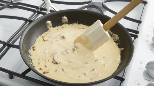 Step5Meanwhile, in 10-inch skillet, cook whipping cream, tomatoes, salt and pepper flakes over medium-high heat 3 to 4 minutes or until slightly thickened. Cover to keep warm.