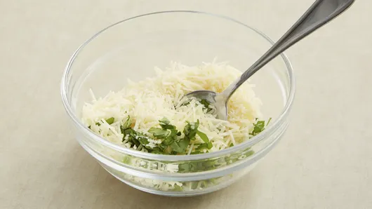 Step2In small bowl, mix Parmesan cheese and basil until well blended. Set aside.