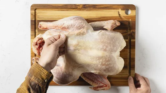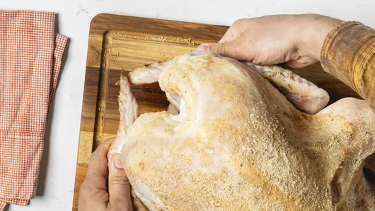 Fold wings across back of turkey so tips are touching.