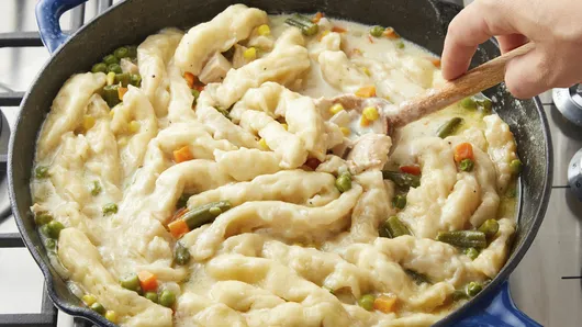 var configuration = {"title":"Grands!™ Turkey and Dumplings","introduction":"There\u0027s nothing we don\u0027t love about this easy turkey and dumplings recipe made with Pillsbury™ Grands!™ Biscuits. Throw your leftover Thanksgiving turkey into the skillet along with mixed vegetables and a creamy broth and in no time, you\u0027ll have a satisfying meal that comes together with ease.","servingSize":"1 Cup","image":{"small":{"media":"(min-width: 0px)","src":"https://mojo.generalmills.com/api/public/content/4YLXg73CAUqYFpJ4dnnO1w_webp_base.webp?v=ef1d8fae\u0026t=e724eca7b3c24a8aaa6e089ed9e611fd"},"medium":{"media":"(min-width: 500px)","src":"https://mojo.generalmills.com/api/public/content/4YLXg73CAUqYFpJ4dnnO1w_webp_base.webp?v=ef1d8fae\u0026t=191ddcab8d1c415fa10fa00a14351227"},"large":{"media":"(min-width: 767px)","src":"https://mojo.generalmills.com/api/public/content/4YLXg73CAUqYFpJ4dnnO1w_webp_base.webp?v=ef1d8fae\u0026t=191ddcab8d1c415fa10fa00a14351227"},"alt":"Grands!™ Turkey and Dumplings"},"contributor":{"label":"By","name":"Pillsbury Kitchens","profileUrl":"/about-us","displayDate":{"label":"Updated","date":"May 12, 2021"}},"ingredientGroups":[{"ingredients":[{"quantity":"2","description":"tablespoons butter"},{"quantity":"1/2","description":"cup chopped onion"},{"quantity":"1","description":"carton (32 oz) Progresso™ chicken broth (4 cups)"},{"quantity":"4","description":"oz (from 8-oz package) cream cheese, cut into 1-inch pieces"},{"quantity":"1/4","description":"teaspoon salt"},{"quantity":"1/2","description":"teaspoon pepper"},{"quantity":"2","description":"cups cubed cooked turkey"},{"quantity":"1 1/2","description":"cups frozen mixed vegetables, thawed"},{"quantity":"1","description":"can (16.3 oz) refrigerated Pillsbury™ Grands!™ Southern Homestyle Buttermilk Biscuits (8 Count) or 1 can (16.3 oz) refrigerated Pillsbury™ Grands!™ Southern Homestyle Southern Recipe Biscuits (8 Count)","productLink":"/products/biscuits/grands-refrigerated-biscuits/homestyle-buttermilk"},{"quantity":"4","description":"teaspoons all-purpose flour"}]}],"steps":[{"description":"In 4- or 5-quart Dutch oven, melt butter over medium heat. Add onion; cook 3 to 4 minutes, stirring occasionally, until tender. Add broth, cream cheese, salt and pepper; cook until cream cheese has melted and broth is boiling, stirring occasionally. Increase heat to medium-high; stir in turkey and mixed vegetables. Heat to a simmer; reduce heat to medium-low. Cook until thoroughly heated.","stepShotImageUrl":"//mojo.generalmills.com/api/public/content/l4EqFT37UkSfGIAxXGlOoQ_webp_base.webp?v=2c81fcbe\u0026t=51a43a57af4046789e5a7f20567b1195"},{"description":"Separate dough into 8 biscuits; sprinkle with flour until biscuits are evenly coated. Roll or pat each biscuit to 1/8 inch thick; cut into 1/2-inch-wide strips, tossing with flour as you go. Drop strips, one at a time, into hot turkey mixture.","stepShotImageUrl":"//mojo.generalmills.com/api/public/content/vCThPMFDOEuG_KHVUncraA_webp_base.webp?v=ec7ae842\u0026t=51a43a57af4046789e5a7f20567b1195"},{"description":"Cover; simmer 15 to 20 minutes, stirring occasionally, until biscuits are no longer doughy.","stepShotImageUrl":"//mojo.generalmills.com/api/public/content/OpxXusjUMEaKqO3hi5Y-xg_webp_base.webp?v=8b449e11\u0026t=51a43a57af4046789e5a7f20567b1195"}],"tips":[{"title":"","description":"Use leftover turkey meat from your Thanksgiving dinner for this recipe—just chop and use as directed. Both white and dark meat work great!","category":"Substitution","tipShots":[]},{"title":"","description":"Tossing the strips of biscuits with flour helps keep them separate while cooking and also thickens the turkey mixture.","category":"Recipe/Ingredient Facts","tipShots":[]},{"title":"","description":"Don\u0027t have leftover turkey? Try our beloved \u003ca href=\u0022https://www.pillsbury.com/recipes/easy-chicken-and-dumplings/b6f8b219-4b69-4aa1-8b59-ca58c8ed210b\u0022 target=\u0022_blank\u0022\u003eEasy Chicken and Dumplings\u003c/a\u003e recipe instead.","category":"Editorial","tipShots":[]},{"title":"","description":"Want more ideas for using up your leftover turkey? From casseroles to crescent rings, we have plenty of \u003ca href=\u0022https://www.pillsbury.com/recipes/ingredient/turkey/leftovers\u0022 target=\u0022_blank\u0022\u003eTurkey Leftovers Recipes\u003c/a\u003e to choose from!","category":"Editorial","tipShots":[]},{"title":"","description":"Want to know how to cook a turkey in the first place? Follow our easy, no-fail method for \u003ca href=\u0022https://www.pillsbury.com/everyday-eats/dinner-tonight/how-to-cook-a-turkey-our-easy-no-fail-method\u0022 target=\u0022_blank\u0022\u003eThanksgiving Turkey\u003c/a\u003e for a complete guide.","category":"Editorial","tipShots":[]},{"title":"","description":"Kitchen Tested - 7/2019","category":"Kitchen Tested","tipShots":[]}],"kitchenTips":[{"title":"","description":"Use leftover turkey meat from your Thanksgiving dinner for this recipe—just chop and use as directed. Both white and dark meat work great!","category":"Substitution","tipShots":[]},{"title":"","description":"Tossing the strips of biscuits with flour helps keep them separate while cooking and also thickens the turkey mixture.","category":"Recipe/Ingredient Facts","tipShots":[]}],"additionalContent":[],"faq":[],"tipCategories":[{"categoryName":"Editorial","heading":"More About This Recipe","cssClass":"recipePartStory","expandOnInit":false,"expandText":"More +","collapseText":"Less -","expandEventName":"","collapseEventName":"","image":"","tips":[{"title":"","description":"Don\u0027t have leftover turkey? Try our beloved \u003ca href=\u0022https://www.pillsbury.com/recipes/easy-chicken-and-dumplings/b6f8b219-4b69-4aa1-8b59-ca58c8ed210b\u0022 target=\u0022_blank\u0022\u003eEasy Chicken and Dumplings\u003c/a\u003e recipe instead.","category":"Editorial","tipShots":[]},{"title":"","description":"Want more ideas for using up your leftover turkey?
