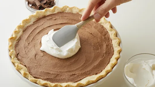 - Though its name suggests European origins, French silk pie began in America. In fact, this simplified version of the classic recipe was a finalist in the 1951 Pillsbury Bake-Off® Contest, created by home baker Betty Cooper from Kensington, Maryland. Many French silk pie recipes call for raw eggs to make the mousse-like, silky chocolate filling, but this recipe calls for pasteurized eggs instead, eliminating any food safety worries or concerns. French silk pies like this one are often known for their pretty presentation—whipped cream and chocolate curls add the perfect finishing touch. You can also dress up the pie crust to make it extra special! Find everything you need to know about making the perfect pie crust in this easy how-to article and then head over to our chocolate pies collection to choose your next baking adventure!