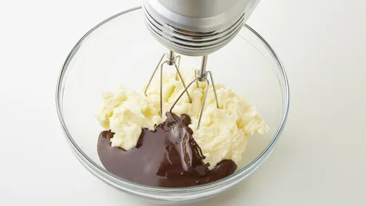 Step2In 1-quart saucepan, melt chocolate over low heat; cool. In small bowl with electric mixer, beat butter on medium speed until fluffy. Gradually beat in sugar until light and fluffy. Beat in cooled chocolate and vanilla until well blended.