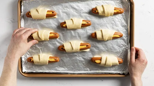 Crescent Rolls: These quick and convenient refrigerated Pillsbury™ Crescent Rolls bake up into a golden, flaky crust that wraps around the hot dogs.
