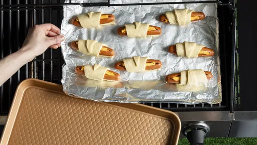 Cookie Sheet: Using a cookie sheet without sides makes it easy to transfer the crescent dogs to and from the grill.