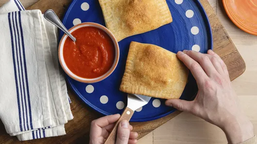 You’ll love how the exterior of the calzone dough bakes golden brown, like the very best pizza crust you’ve ever had, all the way around. Inside, it’s filled with savory Italian pepperoni, gooey mozzarella cheese and tangy marinara sauce. Try our Fresh and Fantastic Pizza Sauce for a simple way to step up the sauce.