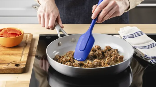Step1Heat oven to 425°F. Spray cookie sheet with cooking spray. In 10-inch skillet, cook sausage over medium heat, stirring frequently, until no longer pink; drain. Stir in 1/2 cup of the marinara sauce, the pepperoni and basil. Set aside.