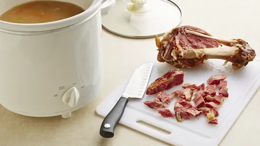 var configuration = {"title":"Easy Slow-Cooker Ham Bone Soup","introduction":"Enjoy this wonderful slow-cooker ham bone soup loaded with beans, vegetables and ham.","servingSize":"1 Serving","image":{"small":{"media":"(min-width: 0px)","src":"https://mojo.generalmills.com/api/public/content/3SsQIUJ7J06RL1Ike6hg9A_webp_base.webp?v=3049e61c\u0026t=e724eca7b3c24a8aaa6e089ed9e611fd"},"medium":{"media":"(min-width: 500px)","src":"https://mojo.generalmills.com/api/public/content/3SsQIUJ7J06RL1Ike6hg9A_webp_base.webp?v=3049e61c\u0026t=191ddcab8d1c415fa10fa00a14351227"},"large":{"media":"(min-width: 767px)","src":"https://mojo.generalmills.com/api/public/content/3SsQIUJ7J06RL1Ike6hg9A_webp_base.webp?v=3049e61c\u0026t=191ddcab8d1c415fa10fa00a14351227"},"alt":"Easy Slow-Cooker Ham Bone Soup"},"contributor":{"label":"By","name":"Pillsbury Kitchens","profileUrl":"/about-us","displayDate":{"label":"Updated","date":"Feb 5, 2018"}},"ingredientGroups":[{"ingredients":[{"quantity":"1","description":"lb smoked ham shank or ham bone"},{"quantity":"1/2","description":"cup chopped carrot"},{"quantity":"1/2","description":"cup chopped celery"},{"quantity":"1/2","description":"cup chopped onion"},{"quantity":"2","description":"cans (15.8 oz each) great northern beans, drained, rinsed"},{"quantity":"5","description":"cups Progresso™ reduced sodium chicken broth (from two 32-oz cartons)"},{"quantity":"1/2","description":"teaspoon salt"},{"quantity":"1/2","description":"teaspoon pepper"}]}],"steps":[{"description":"Spray 3 1/2- to 4-quart slow cooker with cooking spray. Place ham shank in slow cooker; add remaining ingredients.","stepShotImageUrl":"//mojo.generalmills.com/api/public/content/05h-xCmXzkuYYn0OqALZ9Q_webp_base.webp?v=3e0e7a55\u0026t=51a43a57af4046789e5a7f20567b1195"},{"description":"Cover; cook on Low heat setting 5 to 6 hours or until ham shank is tender."},{"description":"Remove ham shank; cut into small pieces. Stir into slow cooker. To thicken, mash beans with fork.","stepShotImageUrl":"//mojo.generalmills.com/api/public/content/BnfUqKyiVUCLjzkHyRFXiQ_webp_base.webp?v=bafcf0ec\u0026t=51a43a57af4046789e5a7f20567b1195"}],"tips":[{"title":"","description":"This hearty ham bone soup is delicious with hot-from-the oven crescents or biscuits.","category":"Techniques","tipShots":[]},{"title":"","description":"For more flavor, add 1 bay leaf the last hour of cook time.","category":"Recipe/Ingredient Facts","tipShots":[]},{"title":"","description":"The ham bone is the large piece left over from a giant bone-in ham, like the ones served at big holiday dinners such as Christmas or Easter. Never throw that bone away! It is the key ingredient for absolutely \u003ca href=\u0022https://www.pillsbury.com/recipes/dish-type/soup/ham\u0022 target=\u0022_blank\u0022\u003e delicious stocks and soups\u003c/a\u003e like this super easy slow-cooker ham bone soup. \r\n\r\nIf you don’t have all of the ingredients required for this soup on hand, and don’t have time to go to the grocery store, you can still make a ham bone stock that you can use in homemade soups. Simply simmer the ham bone in a large pot or Dutch oven on the stove with water and ingredients like chopped onion, celery, carrots and/or garlic. After a few hours, strain the stock and discard the solids. Store your stock in the fridge and use it within 2-3 days.\r\n\r\nCan’t get enough of your favorite soups? Make them even better with these simple (but delicious!) \u003ca href=\u0022 https://www.pillsbury.com/everyday-eats/dinner-tonight/ways-to-take-your-soup-up-a-notch\u0022 target=\u0022_blank\u0022\u003e tips and tricks.\u003c/a\u003e \r\n","category":"Editorial","tipShots":[]},{"title":"","description":"Kitchen Tested - 5/2015.","category":"Kitchen Tested","tipShots":[]}],"kitchenTips":[{"title":"","description":"This hearty ham bone soup is delicious with hot-from-the oven crescents or biscuits.","category":"Techniques","tipShots":[]},{"title":"","description":"For more flavor, add 1 bay leaf the last hour of cook time.","category":"Recipe/Ingredient Facts","tipShots":[]}],"additionalContent":[],"faq":[],"tipCategories":[{"categoryName":"Editorial","heading":"More About This Recipe","cssClass":"recipePartStory","expandOnInit":false,"expandText":"More +","collapseText":"Less -","expandEventName":"","collapseEventName":"","image":"","tips":[{"title":"","description":"The ham bone is the large piece left over from a giant bone-in ham, like the ones served at big holiday dinners such as Christmas or Easter. Never throw that bone away! It is the key ingredient for absolutely \u003ca href=\u0022https://www.pillsbury.com/recipes/dish-type/soup/ham\u0022 target=\u0022_blank\u0022\u003e delicious stocks and soups\u003c/a\u003e like this super easy slow-cooker ham bone soup. \r\n\r\nIf you don’t have all of the ingredients required for this soup on hand, and don’t have time to go to the grocery store, you can still make a ham bone stock that you can use in homemade soups. Simply simmer the ham bone in a large pot or Dutch oven on the stove with water and ingredients like chopped onion, celery, carrots and/or garlic. After a few hours, strain the stock and discard the solids. Store your stock in the fridge and use it within 2-3 days.\r\n\r\nCan’t get enough of your favorite soups? Make them even better with these simple (but delicious!) \u003ca href=\u0022 https://www.pillsbury.com/everyday-eats/dinner-tonight/ways-to-take-your-soup-up-a-notch\u0022 target=\u0022_blank\u0022\u003e tips and tricks.\u003c/a\u003e \r\n","category":"Editorial","tipShots":[]}],"isExpandable":false},{"categoryName":"Kitchen Tested","heading":"More About This Recipe","cssClass":"recipePartStory","expandOnInit":false,"expandText":"More +","collapseText":"Less -","expandEventName":"","collapseEventName":"","image":"","tips":[{"title":"","description":"Kitchen Tested - 5/2015.","category":"Kitchen Tested","tipShots":[]}],"isExpandable":false}],"nutritionInfo":{"configuration":{