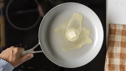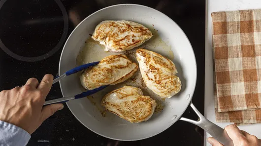 Start with a quick stovetop sear in melted butter to give the chicken a nice golden color and seal in flavor. Once browned, transfer the chicken to your slow cooker.