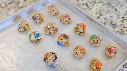 Everything you love about monster cookies is rolled into a no-bake, protein-packed granola bite great for quick afternoon snacks.