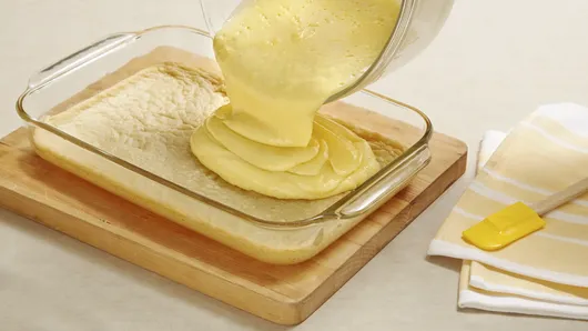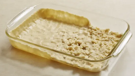 Step1Heat oven to 350°F. Thoroughly grease or spray 13x9-inch (3-quart) baking dish; press cookie dough in even layer in bottom and 1 1/2 inches up sides of dish. Bake 22 minutes. Cool 10 minutes.