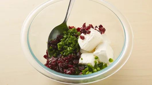 Step2In medium bowl, mix cream cheese, cranberries, chives and jalapeño chile.