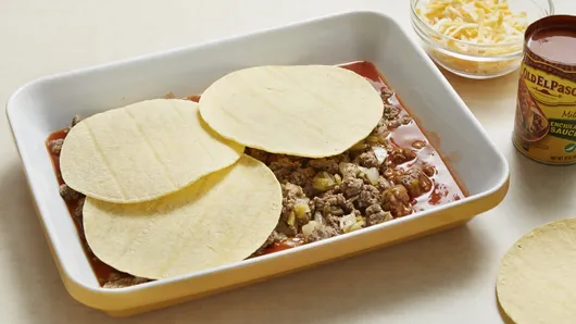var configuration = {"title":"Easy Layered Beef Enchiladas","introduction":"There are just some nights when you want to make a dinner that everyone will agree on, and that’s when it’s time to rely on this beef enchiladas recipe. With a streamlined prep (thanks El Paso™ Chopped Green Chiles and Old El Paso™ Red Enchilada Sauce!), you can have dinner on the table in just 45 minutes.","servingSize":"1 Serving","image":{"small":{"media":"(min-width: 0px)","src":"https://mojo.generalmills.com/api/public/content/89dYb_9YYkunx8W9nQeAig_webp_base.webp?v=3160c149\u0026t=e724eca7b3c24a8aaa6e089ed9e611fd"},"medium":{"media":"(min-width: 500px)","src":"https://mojo.generalmills.com/api/public/content/89dYb_9YYkunx8W9nQeAig_webp_base.webp?v=3160c149\u0026t=191ddcab8d1c415fa10fa00a14351227"},"large":{"media":"(min-width: 767px)","src":"https://mojo.generalmills.com/api/public/content/89dYb_9YYkunx8W9nQeAig_webp_base.webp?v=3160c149\u0026t=191ddcab8d1c415fa10fa00a14351227"},"alt":"Easy Layered Beef Enchiladas"},"contributor":{"label":"By","name":"Pillsbury Kitchens","profileUrl":"/about-us","displayDate":{"label":"Updated","date":"Jun 13, 2019"}},"ingredientGroups":[{"ingredients":[{"quantity":"1","description":"lb. lean ground beef"},{"quantity":"3/4","description":"cup chopped onions"},{"quantity":"2","description":"garlic cloves, minced"},{"quantity":"1","description":"can (4 oz) Old El Paso™ Chopped Green Chiles"},{"quantity":"1/2","description":"teaspoon salt"},{"quantity":"1/8","description":"teaspoon pepper"},{"quantity":"2","description":"cans (10 oz) Old El Paso™ Mild Red Enchilada Sauce"},{"quantity":"8","description":"(6-inch) corn tortillas"},{"quantity":"4","description":"oz. shredded Mexican cheese blend (1 cup) "},{"quantity":"","description":"Sour cream, if desired"}]}],"steps":[{"description":"Heat oven to 375°F. In large nonstick skillet, cook ground beef, onions and garlic until beef is thoroughly cooked, stirring frequently. Drain. Add green chiles, salt and pepper; mix well. Remove from heat.","stepShotImageUrl":"//mojo.generalmills.com/api/public/content/IgVZyinLGEGMKID7PKXGaQ_webp_base.webp?v=fb16f34b\u0026t=51a43a57af4046789e5a7f20567b1195"},{"description":"Pour 1 can of the enchilada sauce in bottom of ungreased 13x9-inch (3-quart) glass baking dish. Arrange 4 tortillas in dish, overlapping slightly. Spoon beef mixture evenly over tortillas; top with remaining 4 tortillas. Pour remaining can of enchilada sauce over top. Sprinkle with cheese.","stepShotImageUrl":"//mojo.generalmills.com/api/public/content/7Ff7WuSFfkCqT3sOovTV3Q_webp_base.webp?v=08240c94\u0026t=51a43a57af4046789e5a7f20567b1195"},{"description":"Bake at 375°F for 20 to 25 minutes or until thoroughly heated. Serve with sour cream."}],"tips":[{"title":"More About This Recipe","description":"When you’re craving recipes from south of the border, there’s nothing more delicious and easy than enchiladas. Cheesy, saucy and filled with your favorite ingredients, enchiladas are easily customized to your family’s tastes. Enchiladas originated in Mexico—the ancient Mayans had their own version of filled, rolled tortillas, but it wasn’t until 1831 that the enchilada recipe we’re familiar with today was published in the first Mexican cookbook. They got their name from the Spanish word “enchilar,” which literally means “to season with chili.” To make your enchiladas, you just need some tortillas, cheese, and sauce, plus meat and veggies for your filling. If you’re short on time or feeling lazy, this recipe has got you covered—no fussy rolling required! Otherwise, try traditional \u003ca href=\u0022https://www.pillsbury.com/recipes/5-ingredient-beef-enchilada-casserole/dde5a588-c427-4d09-b18c-83d064032550\u0022 target=\u0022_blank\u0022\u003ebeef enchiladas with red sauce\u003c/a\u003e, mix it up with \u003ca href=\u0022https://www.pillsbury.com/recipes/creamy-chicken-enchiladas/af826522-e1f8-4e4b-97df-6073efbfcdde\u0022 target=\u0022_blank\u0022\u003echicken and a creamy white sauce \u003c/a\u003e, or for a kid-friendly version\u003ca href=\u0022https://www.pillsbury.com/recipes/easy-chicken-enchilada-crescent-bake/f0a76d59-2179-4f32-9ffe-671e263ef26c\u0022 target=\u0022_blank\u0022\u003eroll ‘em up in crescents\u003c/a\u003e. From vegetarian enchiladas to mini muffin-tin enchiladas to a fun twist on soup, we’ve got \u003ca href=\u0022https://www.pillsbury.com/recipes/dish-type/enchiladas\u0022 target=\u0022_blank\u0022\u003eevery enchilada recipe\u003c/a\u003e you could ever need.","category":"Editorial","tipShots":[]},{"title":"","description":"Recipe meets Kitchen Tested criteria. Reviewed as part of project MSO-5941 BC Audit 200 recipes","category":"Kitchen Tested","tipShots":[]},{"title":"","description":"A blend of Mexican cheeses typically includes Cheddar, Asadero, Monterey Jack, and sometimes Oaxacan or a variety of queso fresco—which translates as “fresh cheese”.","category":"Recipe/Ingredient Facts","tipShots":[]},{"title":"","description":"An enchilada casserole is often baked in a terra cotta (clay) baking dish called a cazuela. Mexican clay cookware heats up evenly, holds in moisture and is very durable.","category":"Recipe/Ingredient Facts","tipShots":[]},{"title":"","description":"All the flavors of traditional enchiladas are here, but no fussy filling and rolling is required. For a New Mexican-style enchilada dish, swap in ground turkey or ground chicken.","category":"Variation","tipShots":[]},{"title":"","description":"To change this up a little, before baking sprinkle 1 cup coarsely crushed corn tortilla chips on top for some texture.","category":"Variation","tipShots":[]}],"kitchenTips":[{"title":"","description":"A blend of Mexican cheeses typically includes Cheddar, Asadero, Monterey Jack, and sometimes Oaxacan or a variety of queso fresco—which translates as “fresh cheese”.","category":"Recipe/Ingredient Facts","tipShots":[]},{"title":"","description":"