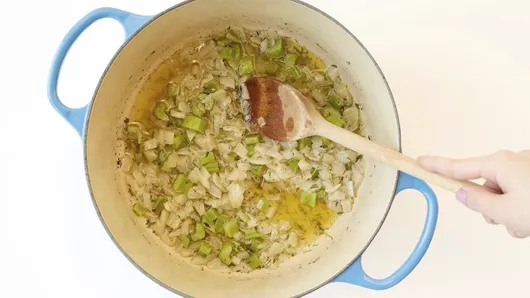 A mixture of celery and onion cooked in butter or oil and seasoned with salt and pepper is a staple in any stuffing. Then you’ll add hearty herbs such as sage, thyme, and perhaps rosemary.