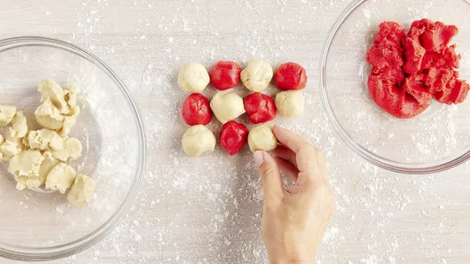 var configuration = {"title":"4-Ingredient Candy Cane Cookies","introduction":"Candy cane cookies are a must-make treat for the holiday season, and now they\u0027re easier to make than ever before! Our recipe comes together with four simple ingredients, and they\u0027re delish. Make our candy cane Christmas cookies with your family this season!","servingSize":"1 Cookie","image":{"small":{"media":"(min-width: 0px)","src":"https://mojo.generalmills.com/api/public/content/8yuwJfbxe0W1Dw1i4Wh-Lw_webp_base.webp?v=ddf74626\u0026t=e724eca7b3c24a8aaa6e089ed9e611fd"},"medium":{"media":"(min-width: 500px)","src":"https://mojo.generalmills.com/api/public/content/8yuwJfbxe0W1Dw1i4Wh-Lw_webp_base.webp?v=ddf74626\u0026t=191ddcab8d1c415fa10fa00a14351227"},"large":{"media":"(min-width: 767px)","src":"https://mojo.generalmills.com/api/public/content/8yuwJfbxe0W1Dw1i4Wh-Lw_webp_base.webp?v=ddf74626\u0026t=191ddcab8d1c415fa10fa00a14351227"},"alt":"4-Ingredient Candy Cane Cookies"},"contributor":{"label":"By","name":"Pillsbury Kitchens","profileUrl":"/about-us","displayDate":{"label":"Updated","date":"Oct 20, 2021"}},"ingredientGroups":[{"ingredients":[{"quantity":"1","description":"roll (16.5 oz) refrigerated Pillsbury™ Sugar Cookie Dough","productLink":"/products/cookies/refrigerated-cookies/sugar-cookies"},{"quantity":"1/4","description":"cup all-purpose flour"},{"quantity":"1/2","description":"teaspoon peppermint extract"},{"quantity":"1/2","description":"teaspoon red food color"},{"quantity":"","description":"Coarse sparkling sugar, if desired"}]}],"steps":[{"description":"Heat oven to 350°F. "},{"description":"In medium bowl, crumble dough; stir or knead in flour and peppermint extract. (DO NOT EAT RAW COOKIE DOUGH AFTER COMBINING WITH FLOUR.) Divide dough into 2 portions. Place 1 portion in small bowl; add food color. Stir or knead until well blended. ","stepShotImageUrl":"//mojo.generalmills.com/api/public/content/w30mN2tjS0OnjD9xJnPmOQ_webp_base.webp?v=e2149312\u0026t=51a43a57af4046789e5a7f20567b1195"},{"description":"Roll scant tablespoonfuls of each color of dough into 1 1/2-inch balls. On floured surface, arrange alternating white and red dough balls, in a row 4 across,. Dough balls should be just touching together. Repeat with remaining dough to make additional rows and create a large rectangle. Roll dough 1/4 inch thick.","stepShotImageUrl":"//mojo.generalmills.com/api/public/content/-wXfDHnTGkSRVfADhAaZww_webp_base.webp?v=c5ac2f4f\u0026t=51a43a57af4046789e5a7f20567b1195"},{"description":"Cut with floured 2 1/2- to 3-inch cane-shaped cookie cutter; place 1 inch apart on ungreased cookie sheets. Reroll dough, and cut additional cookies. Sprinkle with sparkling sugar.","stepShotImageUrl":"//mojo.generalmills.com/api/public/content/NoLyvf5PMUentXPMgDlAbw_webp_base.webp?v=f66787dc\u0026t=51a43a57af4046789e5a7f20567b1195"},{"description":"Bake 8 to 9 minutes or until cookies are set and edges just begin to brown. Cool 2 minutes; remove from cookie sheets. Cool completely, about 10 minutes."}],"tips":[{"title":"","description":"Wearing food-safe plastic gloves makes mixing food color in the cookie dough easier and protects hands from staining! Single-use plastic gloves can be found at most large retailers.","category":"Method Note","tipShots":[]},{"title":"","description":"As you reroll the dough, it will become more marbled with the colors becoming more muted, but just as pretty.","category":"Method Note","tipShots":[]},{"title":"","description":"You can use any of your favorite holiday cookie cutters with this dough. ","category":"Techniques","tipShots":[]},{"title":"","description":"For best results, bake cookies one sheet at a time in center of oven.","category":"Techniques","tipShots":[]},{"title":"","description":"These candy cane sugar cookies are lovely with their freeform colors and a sprinkle of sparkling sugar, but you can outline the candy canes with frosting around the edges of the cookies, too.","category":"Presentation/Garnish","tipShots":[]},{"title":"","description":"Kitchen Tested - 8/2021.","category":"Kitchen Tested","tipShots":[]}],"kitchenTips":[{"title":"","description":"Wearing food-safe plastic gloves makes mixing food color in the cookie dough easier and protects hands from staining! Single-use plastic gloves can be found at most large retailers.","category":"Method Note","tipShots":[]},{"title":"","description":"As you reroll the dough, it will become more marbled with the colors becoming more muted, but just as pretty.","category":"Method Note","tipShots":[]},{"title":"","description":"You can use any of your favorite holiday cookie cutters with this dough. ","category":"Techniques","tipShots":[]},{"title":"","description":"For best results, bake cookies one sheet at a time in center of oven.","category":"Techniques","tipShots":[]},{"title":"","description":"These candy cane sugar cookies are lovely with their freeform colors and a sprinkle of sparkling sugar, but you can outline the candy canes with frosting around the edges of the cookies, too.","category":"Presentation/Garnish","tipShots":[]}],"additionalContent":[],"faq":[],"tipCategories":[{"categoryName":"Kitchen Tested","heading":"More About This Recipe","cssClass":"recipePartStory","expandOnInit":false,"expandText":"More +","collapseText":"Less -","expandEventName":"","collapseEventName":"","image":"","tips":[{"title":"","description":"Kitchen Tested - 8/2021.","category":"Kitchen Tested","tipShots":[]}],"isExpandable":false},{"categoryName":"Method Note","heading":"","cssClass":"recipePartMethodNote","expandOnInit":false,"expandText":"More +","collapseText":"Less -","expandEventName":"","collapseEventName":"","image":"","tips":[{"title":"","description":"Wearing food-safe plastic gloves makes mixing food color in the cookie dough easier and protects hands from staining! Single-use plastic gloves can be found at most large retailers.","category":"Method Note","tipShots":[]},{"title":"","description":"As you rer