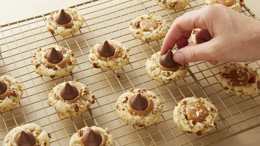 var configuration = {"title":"Turtle Thumbprint Blossoms","introduction":"Choosing between your two favorite Christmas cookies is a thing of the past! Turtle thumbprints and classic blossoms join forces to make one of the easiest and most creative cookies you’ll try this season. Each one gets rolled in chopped pecans, filled with gooey caramel and topped with a Hershey’s™ Kiss™ chocolate. Hello, new favorite dessert.\r\n","servingSize":"1 Cookie","image":{"small":{"media":"(min-width: 0px)","src":"https://mojo.generalmills.com/api/public/content/JRmfrsb2AECFAC4c-ed9rA_webp_base.webp?v=3f92a47b\u0026t=e724eca7b3c24a8aaa6e089ed9e611fd"},"medium":{"media":"(min-width: 500px)","src":"https://mojo.generalmills.com/api/public/content/JRmfrsb2AECFAC4c-ed9rA_webp_base.webp?v=3f92a47b\u0026t=191ddcab8d1c415fa10fa00a14351227"},"large":{"media":"(min-width: 767px)","src":"https://mojo.generalmills.com/api/public/content/JRmfrsb2AECFAC4c-ed9rA_webp_base.webp?v=3f92a47b\u0026t=191ddcab8d1c415fa10fa00a14351227"},"alt":"Turtle Thumbprint Blossoms"},"contributor":{"label":"By","name":"Pillsbury Kitchens","profileUrl":"/about-us","displayDate":{"label":"Updated","date":"Sep 21, 2020"}},"ingredientGroups":[{"ingredients":[{"quantity":"1","description":"roll (16.5 oz) refrigerated Pillsbury™ Sugar Cookie Dough","productLink":"/products/cookies/refrigerated-cookies/sugar-cookies"},{"quantity":"1/4","description":"cup all-purpose flour "},{"quantity":"3/4","description":"cup pecans, finely chopped "},{"quantity":"22","description":"caramels, unwrapped (from 11-oz bag) "},{"quantity":"2","description":"tablespoons heavy whipping cream "},{"quantity":"3/4","description":"teaspoon coarse (kosher) or sea salt "},{"quantity":"36","description":"Hershey’s™ Kisses™ Brand milk chocolate with caramel candies, unwrapped "}]}],"steps":[{"description":"Heat oven to 350°F."},{"description":"In medium bowl, crumble cookie dough; stir or knead in flour until well mixed. (DO NOT EAT RAW COOKIE DOUGH AFTER COMBINING WITH FLOUR.) Shape dough into 36 (about 1-inch) balls. Roll and slightly press balls in pecans (do not flatten). Place 1 inch apart on ungreased cookie sheets.","stepShotImageUrl":"//mojo.generalmills.com/api/public/content/ngRLxfFBh0yLfMR2pTYh2Q_webp_base.webp?v=59a5aa02\u0026t=51a43a57af4046789e5a7f20567b1195"},{"description":"Bake 8 to 12 minutes or until edges are set and light golden brown. Using back of round metal measuring teaspoon, make 1 1/4-inch indentation in center of each cookie. Cool 1 minute on cookie sheets; remove to cooking racks. Cool completely, about 30 minutes.","stepShotImageUrl":"//mojo.generalmills.com/api/public/content/99j9zhmWjUKhUooXrn-6jQ_webp_base.webp?v=213eafec\u0026t=51a43a57af4046789e5a7f20567b1195"},{"description":"In small microwavable bowl, microwave caramels and whipping cream uncovered on High 1 to 2 minutes, stirring after 1 minute, until caramels are melted and smooth. Spoon about 1/2 teaspoon caramel in center of each cookie; sprinkle with salt. Immediately top each caramel-filled cookie with 1 candy, slightly pressing into caramel. Let stand about 10 minutes or until caramel is set. Store covered in refrigerator up to 1 week.","stepShotImageUrl":"//mojo.generalmills.com/api/public/content/0-B5NjDU2EmayJa9exTx6A_webp_base.webp?v=fa2acd79\u0026t=51a43a57af4046789e5a7f20567b1195"}],"tips":[{"title":"","description":"To easily spoon caramel in center of each cookie, cool caramel slightly, and spoon into resealable freezer plastic bag. Cut tiny corner off bag, and pipe into center of cookie.","category":"No Title","tipShots":[]},{"title":"","description":"The Hershey’s™ Kisses™ with caramel add extra caramel deliciousness to these cookies.","category":"No Title","tipShots":[]},{"title":"","description":"Like dark chocolate with your caramel? Substitute Hershey’s™ Kisses™ dark chocolate candies for the caramel candies.","category":"No Title","tipShots":[]},{"title":"","description":"Kitchen Tested - 5/2018.","category":"Kitchen Tested","tipShots":[]}],"kitchenTips":[{"title":"","description":"To easily spoon caramel in center of each cookie, cool caramel slightly, and spoon into resealable freezer plastic bag. Cut tiny corner off bag, and pipe into center of cookie.","category":"No Title","tipShots":[]},{"title":"","description":"The Hershey’s™ Kisses™ with caramel add extra caramel deliciousness to these cookies.","category":"No Title","tipShots":[]},{"title":"","description":"Like dark chocolate with your caramel? Substitute Hershey’s™ Kisses™ dark chocolate candies for the caramel candies.","category":"No Title","tipShots":[]}],"additionalContent":[],"faq":[],"tipCategories":[{"categoryName":"Kitchen Tested","heading":"More About This Recipe","cssClass":"recipePartStory","expandOnInit":false,"expandText":"More +","collapseText":"Less -","expandEventName":"","collapseEventName":"","image":"","tips":[{"title":"","description":"Kitchen Tested - 5/2018.","category":"Kitchen Tested","tipShots":[]}],"isExpandable":false}],"nutritionInfo":{"configuration":{"showAsTable":false,"noNutritionInformationAvailableMessage":"No nutrition information available for this recipe","poweredByText":"\u003cp\u003eNutrition information for this recipe is estimated using a leading nutrition calculation application, but is an estimate only. Actual nutrition values will vary based on the exact ingredients or brands you may use.\u003c/p\u003e\n\u003ca href=\u0022http://developer.edamam.com\u0022\u003ePowered By \u003cimg src=\u0022-/media/C4F33FD467AB4A3AB59AAC4F6306AB04.ashx\u0022 alt=\u0022Edamam\u0022 /\u003e\u003c/a\u003e","nutritionChartTitle":"Nutrition Facts","nutritionInformationLabel":"Nutrition","servingSizeText":"Serving Size:","dailyValuesDisclaimer":"*Percent Daily Values are based on a 2,000 calorie diet.","percentDailyValueText":"% Daily Value","percentDailyValueFooterTitleText":"% Daily Value*:","exchangeInformationTitleText":"Exchanges:","nut