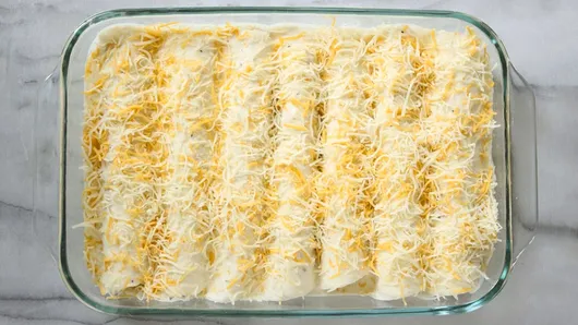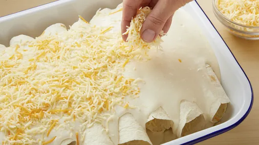 var configuration = {"title":"Creamy Chicken Enchiladas","introduction":"This might just be our favorite white chicken enchilada recipe. It’s so easy—you need just 7 ingredients—and the unexpected addition of cream cheese makes for a rich, creamy white sauce that can\u0027t be beaten. And of course, it’s finished with a bunch of ooey, gooey cheese. What\u0027s not to love? With only 25 minutes of prep time, these Creamy Chicken Enchiladas will be your new favorite enchilada dish.","servingSize":"1 Enchilada","image":{"small":{"media":"(min-width: 0px)","src":"https://mojo.generalmills.com/api/public/content/OlPjzu0sHEqtzxU5jLvlBw_webp_base.webp?v=9e270ab5\u0026t=e724eca7b3c24a8aaa6e089ed9e611fd"},"medium":{"media":"(min-width: 500px)","src":"https://mojo.generalmills.com/api/public/content/OlPjzu0sHEqtzxU5jLvlBw_webp_base.webp?v=9e270ab5\u0026t=191ddcab8d1c415fa10fa00a14351227"},"large":{"media":"(min-width: 767px)","src":"https://mojo.generalmills.com/api/public/content/OlPjzu0sHEqtzxU5jLvlBw_webp_base.webp?v=9e270ab5\u0026t=191ddcab8d1c415fa10fa00a14351227"},"alt":"Creamy Chicken Enchiladas"},"contributor":{"label":"By","name":"Gerry Speirs","displayDate":{"label":"Updated","date":"Oct 7, 2022"}},"ingredientGroups":[{"ingredients":[{"quantity":"2","description":"tablespoons butter"},{"quantity":"2","description":"tablespoons all-purpose flour"},{"quantity":"1 1/2","description":"cups Progresso™ chicken broth (from 32-oz carton)"},{"quantity":"1","description":"package (8 oz) cream cheese, cubed, softened"},{"quantity":"2","description":"cups chopped cooked chicken"},{"quantity":"1","description":"package (11 oz) Old El Paso™ Flour Tortillas for Burritos (8 Count)"},{"quantity":"1","description":"package (8 oz) shredded Mexican cheese blend (2 cups)"}]}],"steps":[{"description":"Heat oven to 350°F. Spray 13x9-inch (3-quart) glass baking dish with cooking spray."},{"description":"In 10-inch skillet, melt butter over medium heat. Stir in flour with whisk until blended. Cook about 2 minutes, stirring frequently. Stir in broth; heat to simmering over high heat. Simmer 1 to 2 minutes or until thickened. Remove from heat. Beat in cream cheese with whisk until sauce is smooth and free of lumps. Spread 1/2 cup of the sauce evenly in bottom of baking dish.","stepShotImageUrl":"//mojo.generalmills.com/api/public/content/DbuddA61EU-OvSti-CaISg_webp_base.webp?v=4094294a\u0026t=51a43a57af4046789e5a7f20567b1195"},{"description":"Place 1/4 cup chicken in line down center of each tortilla; top each with 2 tablespoons of the cheese. Wrap tortillas tightly around filling. Place seam side down in baking dish.","stepShotImageUrl":"//mojo.generalmills.com/api/public/content/K1SBQWmAzkyDEGBQH3U_Sg_webp_base.webp?v=cd59ff6d\u0026t=51a43a57af4046789e5a7f20567b1195"},{"description":"Pour remaining sauce over filled tortillas. Sprinkle remaining 1 cup cheese evenly over top.","stepShotImageUrl":"//mojo.generalmills.com/api/public/content/Ar8rRJMf0UaYJGC0aRcqQw_webp_base.webp?v=31d93f0d\u0026t=51a43a57af4046789e5a7f20567b1195"},{"description":"Bake 30 to 35 minutes or until cheese is melted and center of tortillas is hot (at least 165°F in center).","stepShotImageUrl":"//mojo.generalmills.com/api/public/content/QRNaymXSLk6DHFClicrICQ_webp_base.webp?v=323f8722\u0026t=51a43a57af4046789e5a7f20567b1195"}],"tips":[{"title":"","description":"Pick up your rotisserie chicken as the last item on your shopping list. Be sure the chicken is hot when you select it from the heated case. Always refrigerate the chicken within 2 hours of purchasing. If you are going to use the chicken for this Creamy Chicken Enchiladas recipe, remove the meat from the bones, cut it up and use immediately.","category":"Recipe/Ingredient Facts","tipShots":[]},{"title":"","description":"To quickly soften cream cheese, remove from wrapper, and place on microwaveable plate; microwave uncovered on High about 15 seconds or just until softened.","category":"Techniques","tipShots":[]},{"title":"","description":"Add some chopped fresh cilantro to your white chicken enchiladas as a garnish, and serve with baked refrigerated Pillsbury™ Biscuits and fresh salsa.","category":"Serving Suggestions/Menu","tipShots":[]},{"title":"","description":"For those that want some extra spice, serve your creamy white chicken enchiladas alongside your favorite hot sauce (such as Sriracha or fresh salsa) for an added kick.","category":"Serving Suggestions/Menu","tipShots":[]},{"title":"","description":"With only seven ingredients, these chicken enchiladas are ready to serve in just 1 hour. This recipe pairs well with fresh cilantro as a garnish and fresh salsa for added spice. \n\nTraditional enchiladas are made by rolling filling into corn tortillas and covering with chili pepper sauce. There are many options for filling your enchiladas, including meat, cheese, beans, vegetables, potatoes, seafood and more. The name enchilada originates from the Spanish word enchilar, meaning “to add chile pepper to,” or to “season (or decorate) with chile.” \n\nWant to expand your enchilada recipe library? We’ve got even more \u003ca href=\u0022https://www.pillsbury.com/recipes/dish-type/enchiladas\u0022 target=\u0022_blank\u0022\u003eenchilada recipes\u003c/a\u003e to try with your family this weekend. For an enchilada refresher, this \u003ca href=\u0022https://www.pillsbury.com/everyday-eats/dinner-tonight/tacos-mexican/how-to-make-enchiladas\u0022 target=\u0022_blank\u0022\u003estep-by-step guide\u003c/a\u003e shows you how to stuff, wrap and serve like pro.","category":"Editorial","tipShots":[]}],"kitchenTips":[{"title":"","description":"Pick up your rotisserie chicken as the last item on your shopping list. Be sure the chicken is hot when you select it from the heated case. Always refrigerate the chicken within 2 hours of purchasing. If you are going to use the chicken for this Creamy Chicken Enchiladas recipe, remove the meat from the bones, cut it up and use