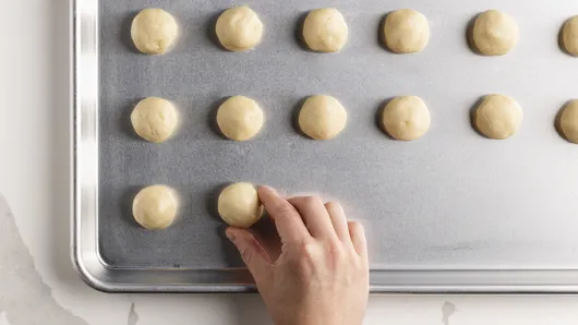 Shape dough into 44 (1-inch) balls. Place 1 inch apart on large ungreased baking sheets.