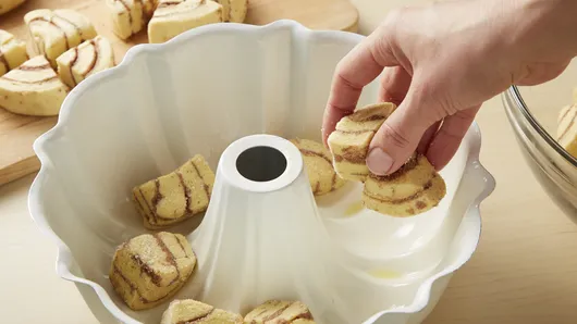 Heat oven to 350°F. Generously grease 12-cup fluted tube cake pan with shortening or cooking spray.