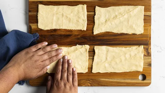 If using crescent rolls: Unroll dough; separate at perforations, creating 4 rectangles. Press perforations to seal. If using a dough sheet: Unroll dough; cut into 4 rectangles.