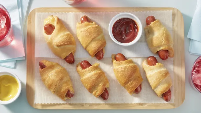Pillsbury™ Crescent Dough: It’s easy to handle and bakes up flaky, puffy, and adorably perfect for the mummy dog wrappings.