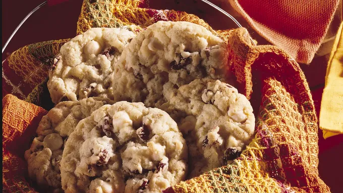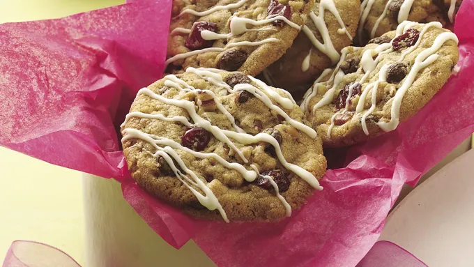 In just three quick steps, white vanilla baking chips and sweetened dried cranberries update a classic cookie for the holidays.
