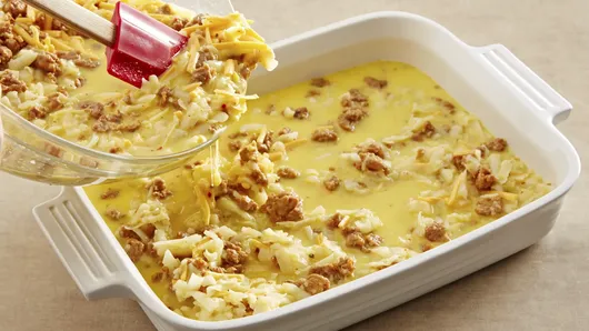 var configuration = {"title":"Overnight Country Sausage-Hash Brown Casserole","introduction":"\u003cp\u003eThis quick and easy breakfast casserole is a satisfying all-in-one egg bake. Filled with cheesy hashbrowns and sausage that’s perfect when you want a relaxing morning with the family, because it’s made the night before. Baking all the components of a hearty breakfast together in one dish means less time spent than if you were to make eggs, sausage, and hash browns all separately. Because it’s assembled the night before, it’s a great sausage-hash brown casserole to serve for a holiday breakfast or brunch. It’s ready to serve once all the presents have all been opened or when you’re in the mood to start your lazy weekend morning.\u003c/p\u003e\u003cp\u003eThis dish comes together quickly, starting with refrigerated hash browns, so there’s no thawing frozen the frozen kind first. The seasoned, shredded potatoes combined with spicy sausage adds a lot of flavor to the dish without the need for a grocery cart full of extra seasonings. Everything gets mixed together and poured into your casserole dish except hold back some of the cheese. It gets added just before baking, so the egg bake has a beautifully cheesy top, that just calls you to take a bite.\u003c/p\u003e","servingSize":"1 Serving","image":{"small":{"media":"(min-width: 0px)","src":"https://mojo.generalmills.com/api/public/content/4SMgx606RUuIasCfFNe0JA_webp_base.webp?v=f521105e\u0026t=e724eca7b3c24a8aaa6e089ed9e611fd"},"medium":{"media":"(min-width: 500px)","src":"https://mojo.generalmills.com/api/public/content/4SMgx606RUuIasCfFNe0JA_webp_base.webp?v=f521105e\u0026t=191ddcab8d1c415fa10fa00a14351227"},"large":{"media":"(min-width: 767px)","src":"https://mojo.generalmills.com/api/public/content/4SMgx606RUuIasCfFNe0JA_webp_base.webp?v=f521105e\u0026t=191ddcab8d1c415fa10fa00a14351227"},"alt":"Overnight Country Sausage-Hash Brown Casserole"},"contributor":{"label":"By","name":"Pillsbury Kitchens","profileUrl":"/about-us","displayDate":{"label":"Updated","date":"Oct 7, 2024"}},"ingredientGroups":[{"ingredients":[{"quantity":"1","description":"package (16 oz) bulk hot pork sausage"},{"quantity":"10","description":"eggs"},{"quantity":"1 1/2","description":"cups milk"},{"quantity":"2","description":"teaspoons Dijon mustard"},{"quantity":"1/4","description":"teaspoon ground pepper"},{"quantity":"1","description":"bag (20 oz) refrigerated O’Brien hash browns (about 4 1/2 cups)"},{"quantity":"1 1/2","description":"cups shredded sharp Cheddar cheese (6 oz)"}]}],"steps":[{"description":"Spray 13x9-inch (3-quart) baking dish with cooking spray. In 8-inch skillet, cook sausage over medium heat 5 to 7 minutes or until no longer pink; drain.","stepShotImageUrl":"//mojo.generalmills.com/api/public/content/I669supkQU6r6nFVSFVu0A_webp_base.webp?v=443c6185\u0026t=51a43a57af4046789e5a7f20567b1195"},{"description":"In large bowl, beat eggs, milk, Dijon mustard and pepper with whisk until mixed well. Stir in hash browns, 1 cup of the cheese and the cooked sausage. Pour mixture in baking dish; cover and refrigerate at least 8 hours but no longer than 12 hours.","stepShotImageUrl":"//mojo.generalmills.com/api/public/content/N1Q3K7APREuL2DdTJnWfLg_webp_base.webp?v=3cf13a1c\u0026t=51a43a57af4046789e5a7f20567b1195"},{"description":"Heat oven to 350°F. Remove dish from refrigerator, uncover and top with remaining 1/2 cup cheese. Bake 45 to 55 minutes or until center is just set. Cool 10 minutes before serving."}],"tips":[{"title":"","description":"Our easy make-ahead hash brown casserole is a scrumptious egg and cheesy hash brown breakfast that’s assembled ahead to pop in the oven in the morning.","category":"Rich Snippet","tipShots":[]},{"title":"","description":"Recipe meets Kitchen Tested criteria. Reviewed as part of project MSO-5941 BC Audit 200 recipes","category":"Kitchen Tested","tipShots":[]},{"title":"","description":"Serve this hearty dish on your brunch buffet along with bacon, fresh fruit salad and cinnamon rolls.","category":"Serving Suggestions/Menu","tipShots":[]}],"kitchenTips":[{"title":"","description":"Serve this hearty dish on your brunch buffet along with bacon, fresh fruit salad and cinnamon rolls.","category":"Serving Suggestions/Menu","tipShots":[]}],"additionalContent":[{"title":"How to Make Sausage-Hashbrown Casserole","description":"\u003cp\u003eLearn how easy this make-ahead hash brown casserole for a crowd is to prepare. Refer to the recipe for all the specific details:\u003c/p\u003e\u003ch3\u003e\u003cstrong\u003eSpray the Casserole Dish\u0026nbsp;\u003c/strong\u003e\u003c/h3\u003e\u003cp\u003eWe prefer to use a 13x9-inch casserole dish, so that each serving gets the maximum the cheesy goodness on top. You can, however, use any shaped 3-quart casserole you have in your kitchen. Spray to lightly coat the bottom and sides.\u003c/p\u003e\u003ch3\u003e\u003cstrong\u003eCook the Sausage\u003c/strong\u003e\u003c/h3\u003e\u003cp\u003eUse a small skillet to cook the sausage. Break up any clumps with a spoon, until it is no longer pink. Drain sausage to remove the grease, so the casserole won’t taste greasy when baked.\u003c/p\u003e\u003ch3\u003e\u003cstrong\u003eMix the Ingredients\u003c/strong\u003e\u003c/h3\u003e\u003cp\u003eBeat the\u003cstrong\u003e \u003c/strong\u003eeggs, milk, mustard, and pepper in a large bowl using a whisk, to break up the eggs quickly. Stir in the refrigerated hash browns, along with most of the cheese. Hold back the remaining cheese to add just before baking. This will keep the cheese on top verses sinking in. Cover and place in the refrigerator.\u003c/p\u003e\u003ch3\u003e\u003cstrong\u003ePour into the Dish and Refrigerate\u003c/strong\u003e\u003c/h3\u003e\u003cp\u003eRefrigerating the mixture allows you to do all the prep ahead, giving you a break in the morning. And as the mixture sits, the starch released by the potatoes helps the dish set-up when baked.\u003c/p\u003e\u003ch3\u003e