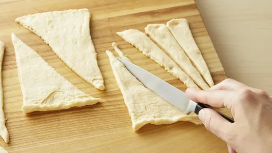 Unroll dough; separate into 8 triangles. Cut each triangle lengthwise into 3 narrow triangles.