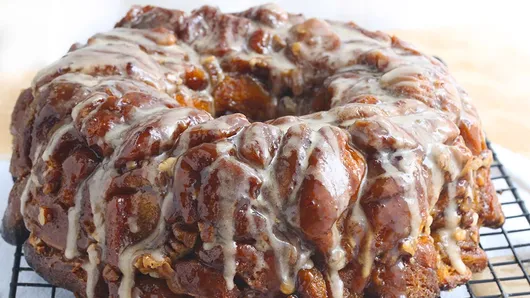 Step6Spoon icing into small microwavable bowl. Microwave on High a few seconds or until icing can be poured. Pour over monkey bread. To serve, pull apart pieces of bread.