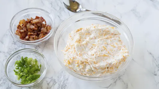 Step2Stir in bacon. If desired, top with extra shredded cheese and sliced green onions to serve.