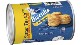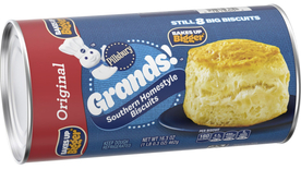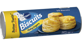 Serve up big smiles with Pillsbury Grands! Flaky Layers Butter Tastin' Biscuits with natural and artificial butter flavor. Make this ideal weeknight dinner side by simply popping the can, placing the dough on a cookie sheet, and baking in an oven. You'll get big biscuits with more of the flaky layers that everyone loves. Pair with butter or another yummy spread as part of a family breakfast, brunch, and any other meal. Or use this refrigerated biscuit dough to whip up biscuits and gravy or breakfast biscuit sandwiches for family and friends. Reach for this dough to make a favorite Pillsbury recipe like Grands! Green Bean Casserole. Add these warm, inviting biscuits to any party table or baked goods gift basket. No matter what you decide, in a few simple steps, these biscuits bring all the fluffiness and deliciousness, without all the fuss. Makes eight big biscuits. At Pillsbury, we strive to make home baked moments extra special through our products and recipes, which help make cooking and baking easy and convenient for even the busiest families.