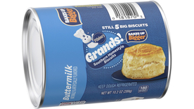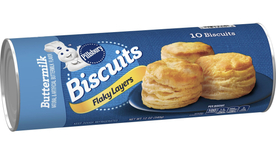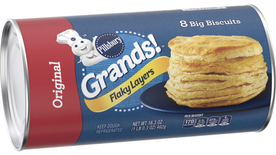 Crispy outside, delicate layers, and oh so golden-brown good! Delight family with the warm scent of Pillsbury Grands! Flaky Layers Buttermilk Biscuits, naturally and artificially flavored, featuring more flaky layers. Just pop, peel, and bake, and they're ready in minutes - no mixing, no mess. And they contain no high fructose corn syrup. Just the comforting goodness you've come to know and love. Enjoy these warm, soft biscuits on their own, or with butter, jams, and other spreads. Use this biscuit dough to create a classic biscuits and gravy recipe or a breakfast sandwich. Store a few cans in the refrigerator, ready to be baked at a moment's notice. Makes eight big biscuits. At Pillsbury, we strive to make home baked moments extra special through our products and recipes, which help make cooking and baking easy and convenient for even the busiest families.
