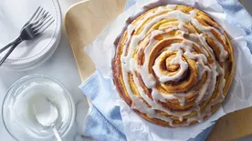 Slow down and savor the morning with warm, freshly baked Pillsbury Cinnamon Rolls with Original Icing. Our delicious cinnamon rolls bake up bigger, compared to our prior recipe. Made with real cinnamon, this ready to bake dough goes from fridge to oven in minutes. There's delight in every bite of these soft, gooey rolls with delectable icing. They make a great addition to a weekday breakfast or your Sunday brunch table. Keep some on hand to bake for a birthday or special holiday treat. Ready in less than 20 minutes, these cozy cinnamon rolls will quickly become a family favorite. Imagine the memories you'll make! These yummy rolls provide a sweet reason for your family to gather around the table. Simply heat oven to 375 degrees F, place rolls in a greased round cake pan, and bake until golden brown. Then spread the sweet icing on top and enjoy. Nothing wakes up the day like an oven-fresh cinnamon roll! Makes eight rolls.